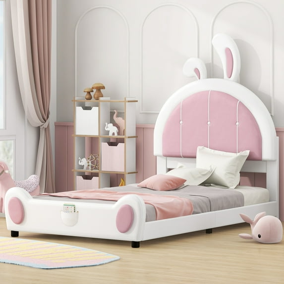 EUROCO Upholstered Twin Cartoon Bunny Platform Bed