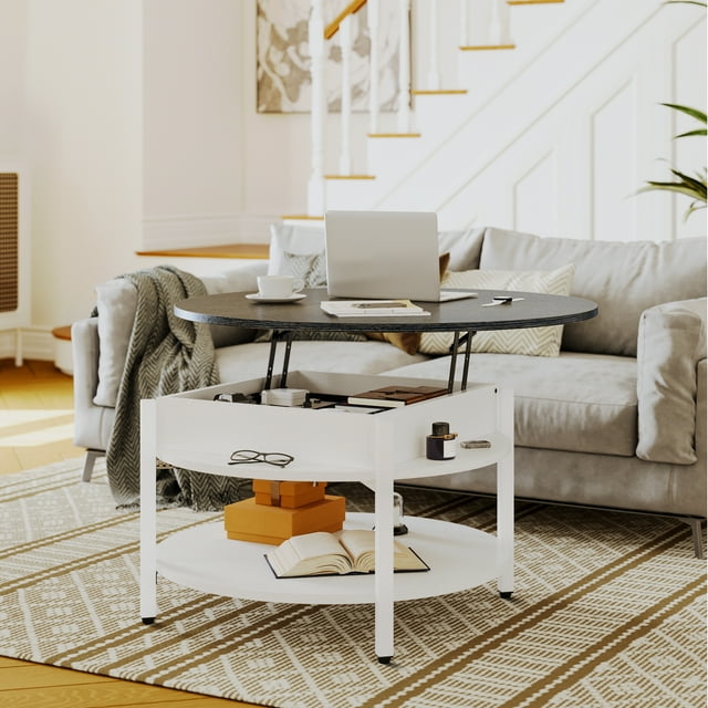 DOVEAID 2 Tier Round Lift Top Coffee Table with Storage