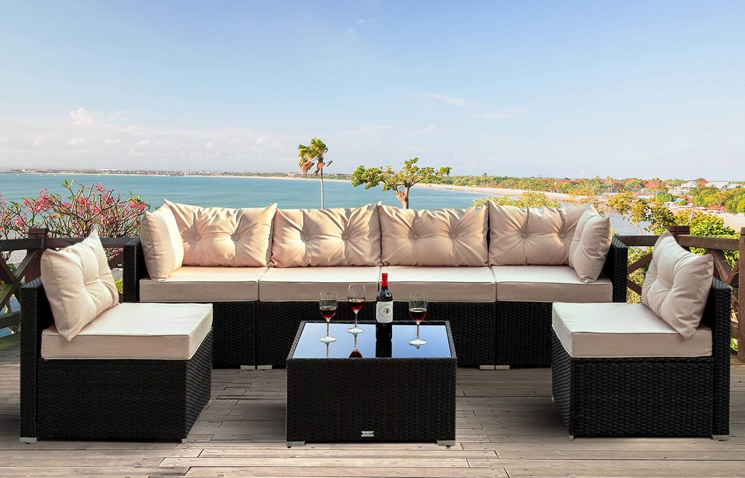 Amolife 7 Pieces Wicker Outdoor Sectional Conversation Sofa Set with Cushions