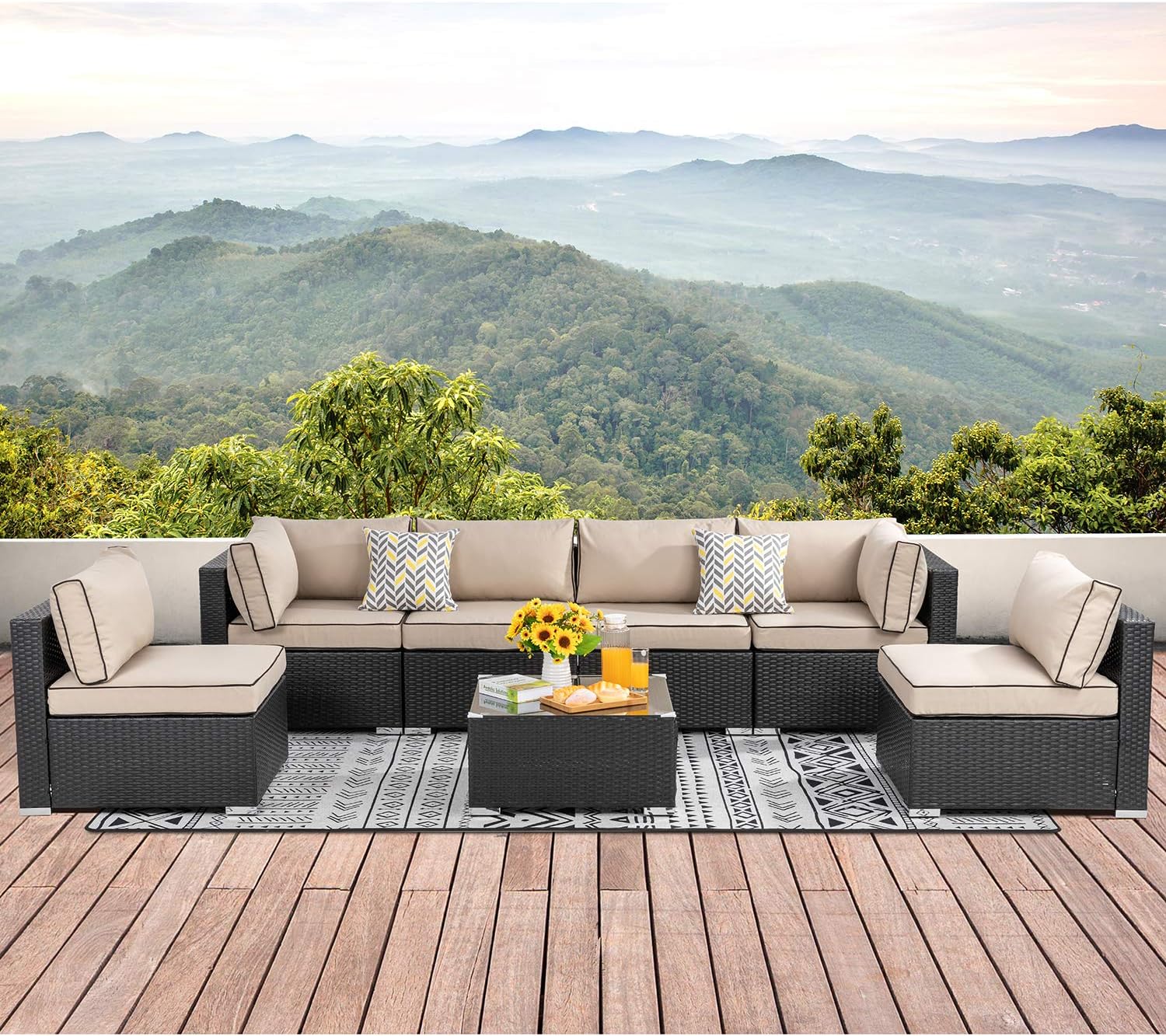 Walsunny 7 Piece All-Weather Rattan Patio Sectional Sofa Set