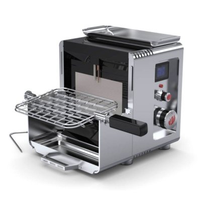 - Convenient flip up warming rack for grilling larger cut of meat