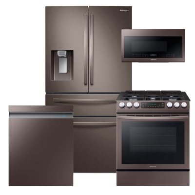 Samsung 4 Piece Kitchen Suite Set with Counter Depth 4-Door Refrigerator, Range, Microw...