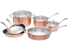 - Includes: 5.5” mini egg pan, 9.5” frypan, 11” frypan with lid, 2QT saucepan with lid, 5QT casserole with lid, silicone tongs and nylon slotted turner