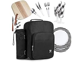 - Includes Backpack/Insulated Picnic Basket, Detachable Bottle/Wine Holder, Fleece Blanket, Plates and Cutlery Set