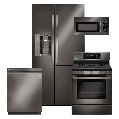LG 4 Piece Kitchen Suite Set with 26 cu.ft Side-by-Side Refrigerator, GAS Convection Ra...