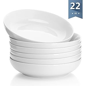 - Sweese 112.001 Porcelain Salad Pasta Bowls – 22 Ounce – Set of 6, White for $28.99 (was $37.99) – Pictured