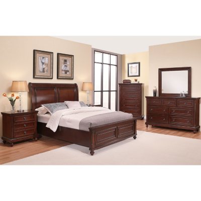 - 6 piece : includes King Bed, 7-drawer dresser, 5-drawer chest, mirror and 2 nightstands