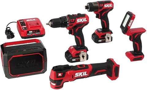 - Includes five SKIL PWRCore 12 products designed for compact power, efficiency and performance: Brushless 12V 1/2 Inch Cordless Drill Driver, Brushless 12V 1/4 Inch Hex Cordless Impact Driver, Brushless 12V Oscillating MultiTool, 12V Area Light and 12V Bluetooth Speaker