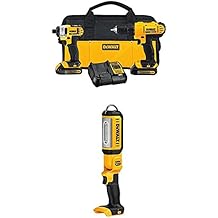 - DEWALT DCK240C2 20v Lithium Drill Driver/Impact Combo Kit with one-handed loading, 1/4″ chuck that accepts 1″ bit tips, 3 LED light ring with 20 second delay on the Impact Driver, DCD771 Drill/Driver has a high performance motor that delivers 300 unit watts out