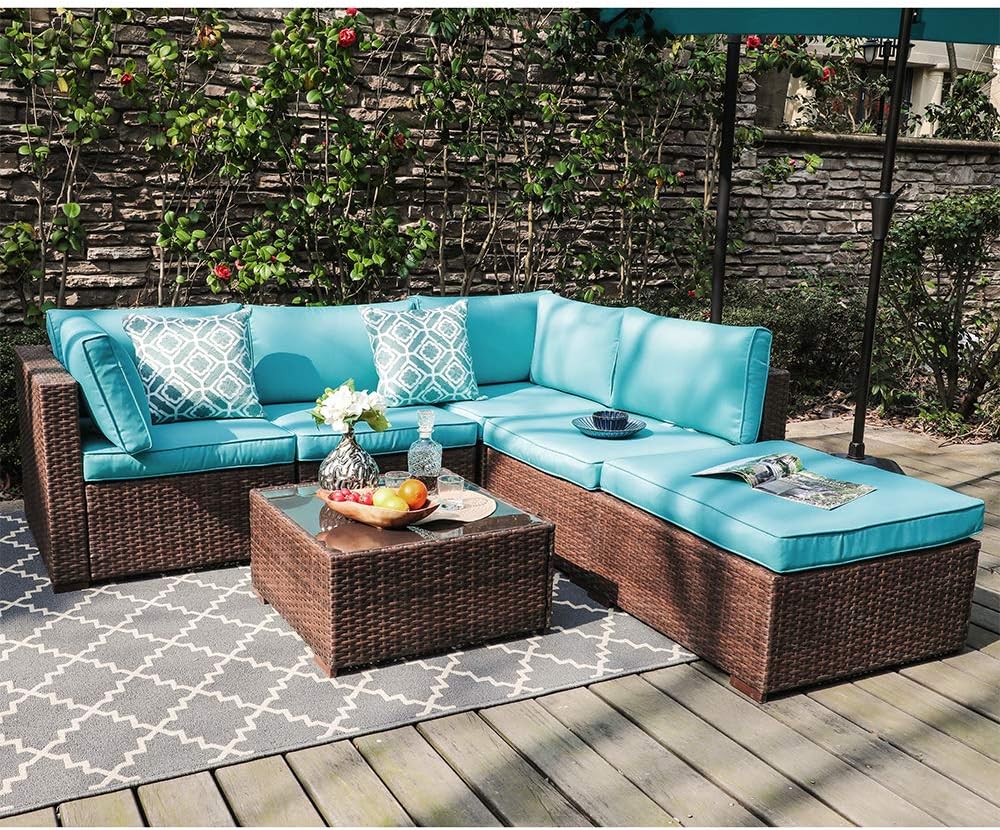 Urhomepro 6 Piece Patio Sectional Sofa Set with Cushions