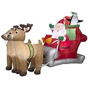 This Berkley Jensen LED Reindeer and Sleigh Sculpture Set is pre-lit with 250 steady-steady burning, warm white and red LED bulbs.