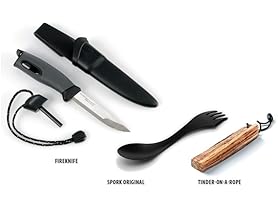 This Light My Fire by Morakniv Swedish FireKnife with 3.75″ Stainless Steel Blade and Fire Starter includes Swedish FireSteel fire starter that twist-locks into handle; spine of the blade is ground especially for use with a fire starter.