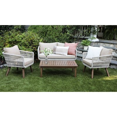 Palm 4 Piece Seating Patio Set with Cast Pumice Fabric