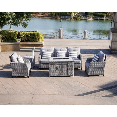 Better Homes & Gardens Elmdale 5 Piece High Swivel Patio Dining Set with Firepit t...