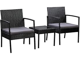- Black weather-resistant resin wicker rattan, durable powder-coated steel frame ensures reliable strength