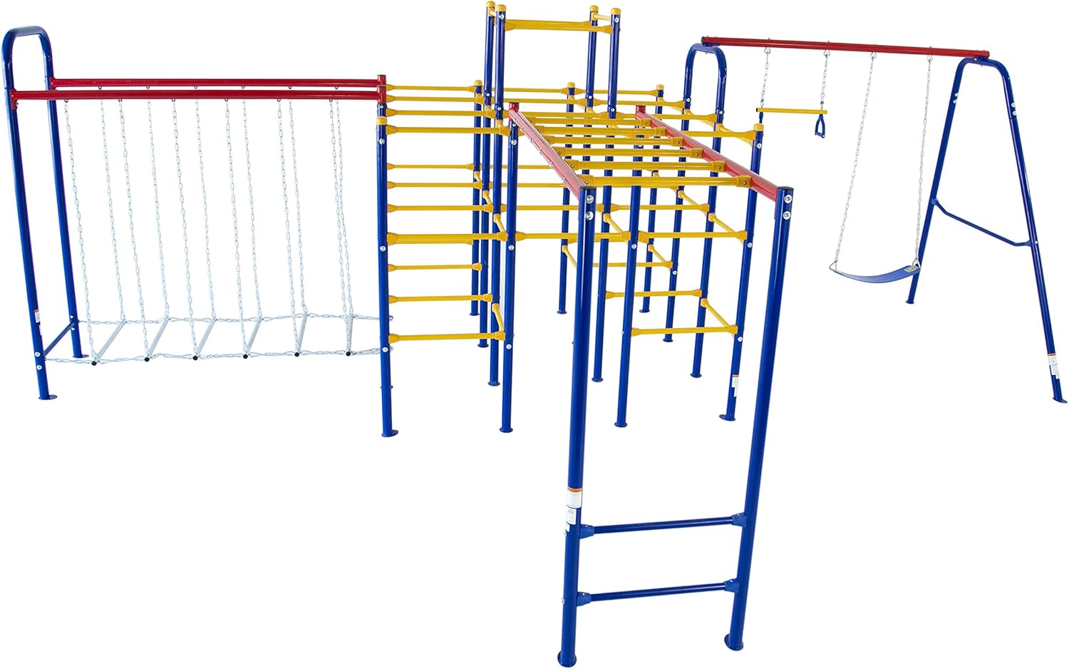 IRONKIDS Cooling Mist Inspiration 100XL Metal Swing Set with Ladder Climber and Protect...