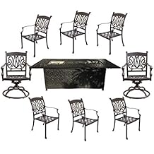 - Includes 6 armless chairs, 3 side tables, 1 coffee table, 6 seat cushions and 8 back cushions