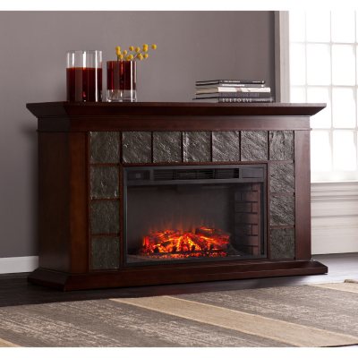Eldorado Faux Slate Fireplace in Warm Brown Walnut Finish