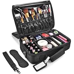 MelodySusie 3 Layers Waterproof Travel Makeup Train Case with Brush Holder
