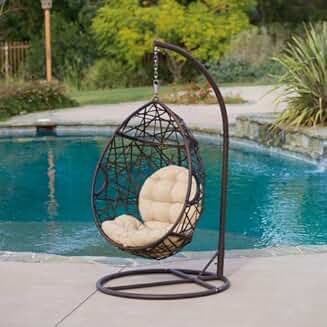 Christopher Knight Outdoor Brown Wicker Tear Drop Hanging Chair