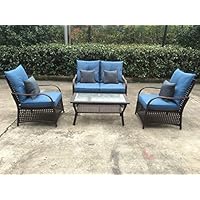 - Includes 2 single chairs, 1 double lounge loveseat, and 1 coffee-magazine table with a tempered glass top