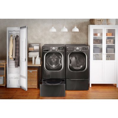 - Two hangers, one pants hanger, shelf, drip tray, anti-tip kit, two rear leveling feet