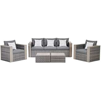 - Includes 1 sofa, 2 armchairs, 2 coffee tables