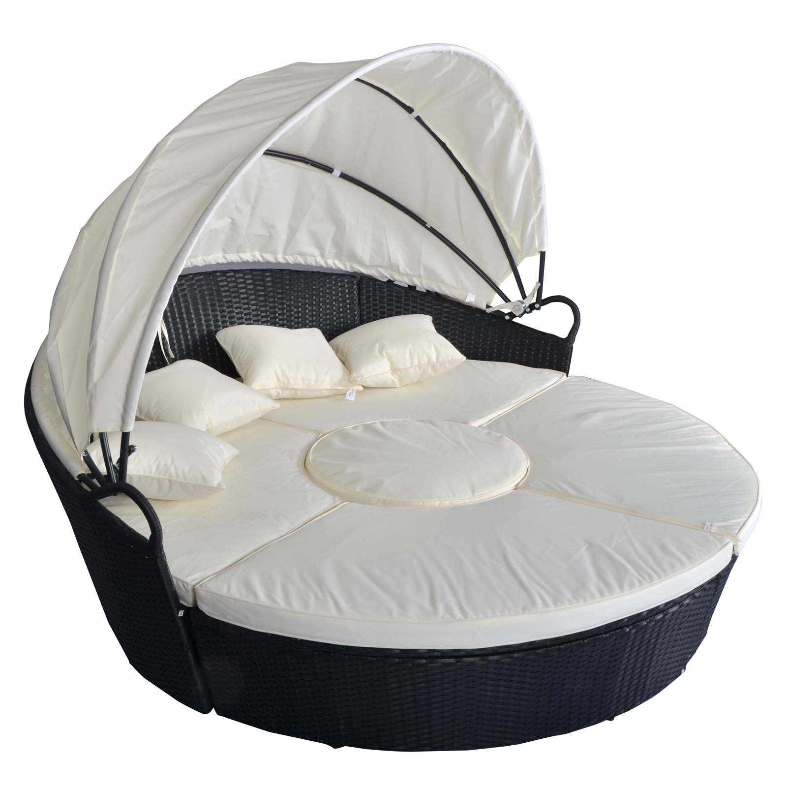 Outdoor Patio Sofa Furniture Round Retractable Canopy Daybed Wicker Rattan