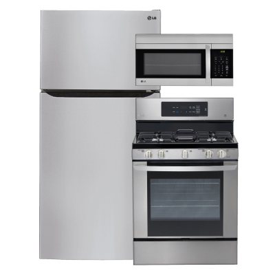 LG Large-Capacity 33” Wide Top-Freezer Refrigerator, Single-Oven Gas Range, and Over-th...