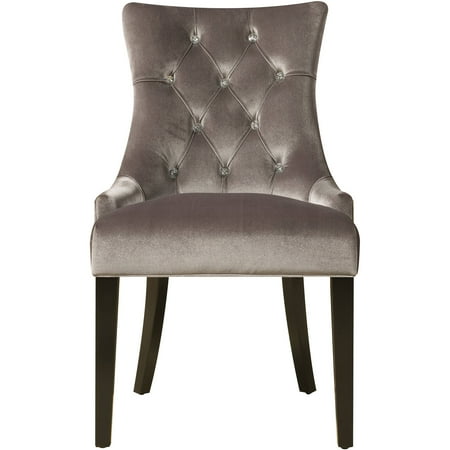 - Velvet fabric, in an elegant shade of chrome, diamond-pattern tufting