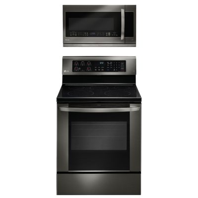 Single-Oven Electric Range with EasyClean and Over-the-Range Microwave Oven Bundle in B...