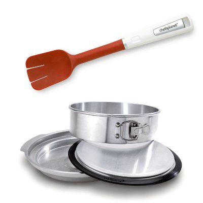 - Includes : leak-proof 9″ springform pan with built-in water bath basin, slotted spatula