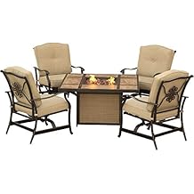 - Includes 4 deep-seating rocker chairs and 1 LP gas fire pit with porcelain tile tabletop