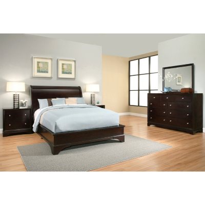 - Includes 5 piece : sleigh bed , two nightstands, 9-drawer dresser and mirror