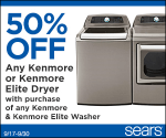 - Get 50% off any Kenmore or Kenmore Elite Dryer with Purchase of any Kenmore & Kenmore Elite Washer