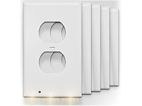 - Pack of 5 White power outlet cover plates with integrated LED lights and sensor