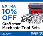 Save Up to 70% off + an EXTRA 10% off Craftsman Mechanics Tool Sets at Sears