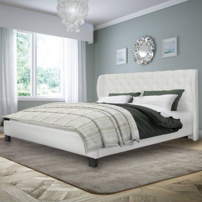 Fairfield Tufted White Bonded Leather Bed