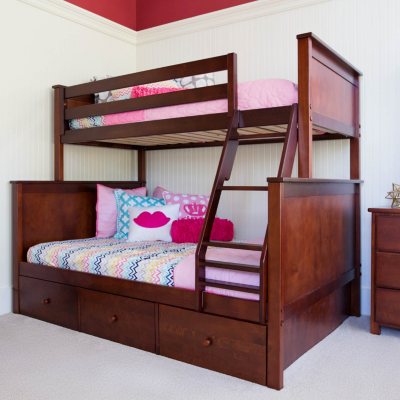 - Extra-tall 14″ guardrails for safe sleeping, grooved ladder steps for safe climbing