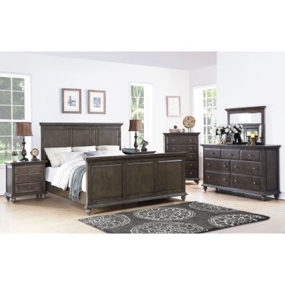 - Includes KING bed, 2 nightstands, dresser, mirror and chest of drawers
