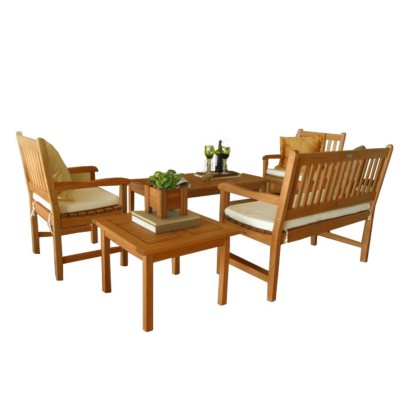 - Includes 1 Loveseat, 1 table, 2 club chairs