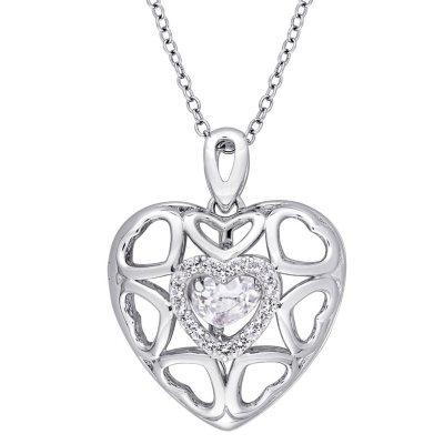 Dancing White Topaz 1.26 CT. Multi-Heart Locket Pendant with 18″ Sterling Silver ...