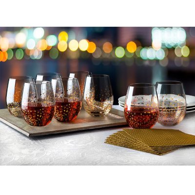 Shannon Crystal Gold Luxe Stemless Wine Goblets, Set of 8