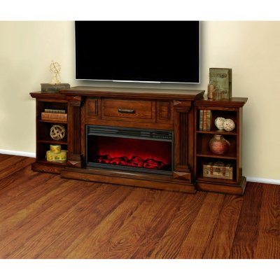 - 76″ mantle fireplace in your choice of Burnished Oak or Vintage Black