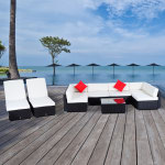 - Comes with 2 x red Throw Pillows, 16 x cushions(6 seat cushions, 8 back cushions, 2 lounger cushions)