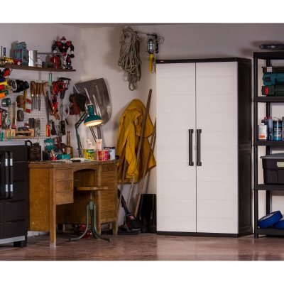 - 4 Doors, 2 Fixed shelves, wire management on back panel, raised decorative linear flat molding on front door panel