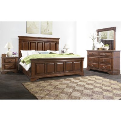 - Includes a King bed, 6-drawer dresser, mirror and 2 nightstands
