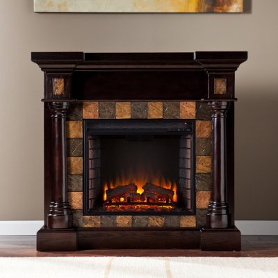 - Columns with wood grain characteristics and minimal wormholes, espresso finish with earth-toned tiles